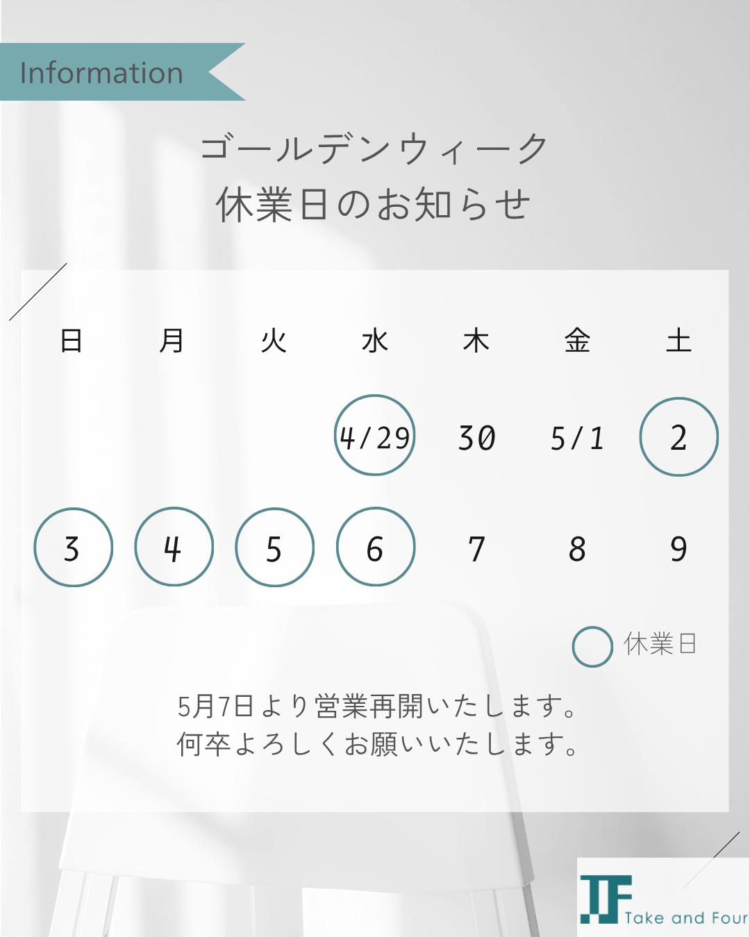 ゴールデンウィーク休業日のお知らせ2026-04-27